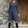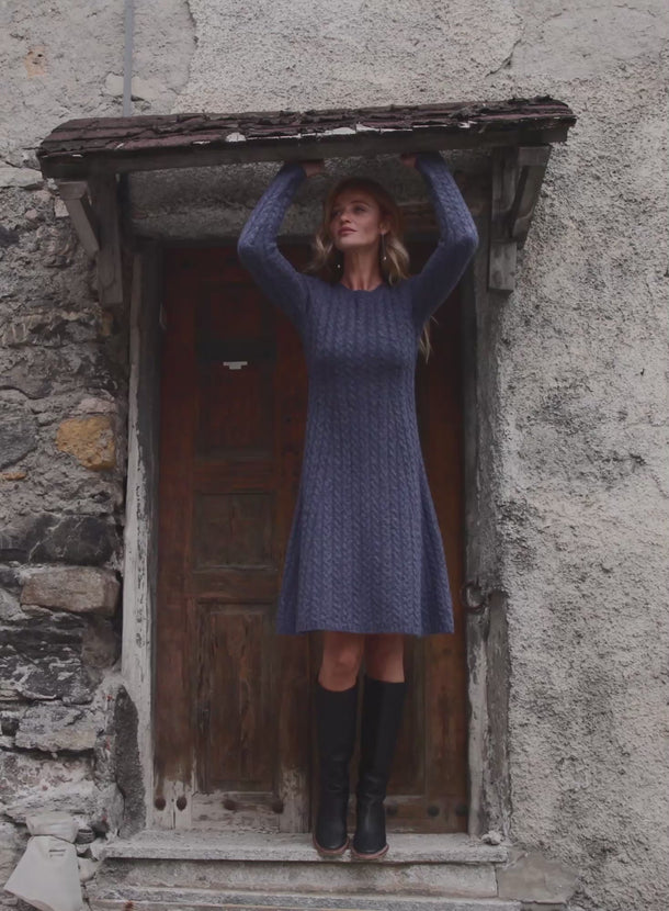 Knit in airy, dimensional cables and ribs, our crewneck sweater-dress is light as a cloud in a baby alpaca blend. Engineered in knit godets for a flattering fit-and-flare silhouette.