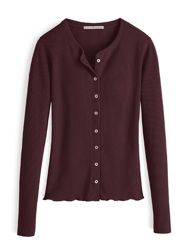 Wrap yourself in cozy elegance with this charming waffle knit top that features a round neck, buttons and delicate lettuce edging at the hem. Perfect for layering, this cardigan is a versatile addition to your wardrobe, offering both warmth and style. Casually mix and match with our Waffle Knit Joggers or Waffle Wide Leg Pants.