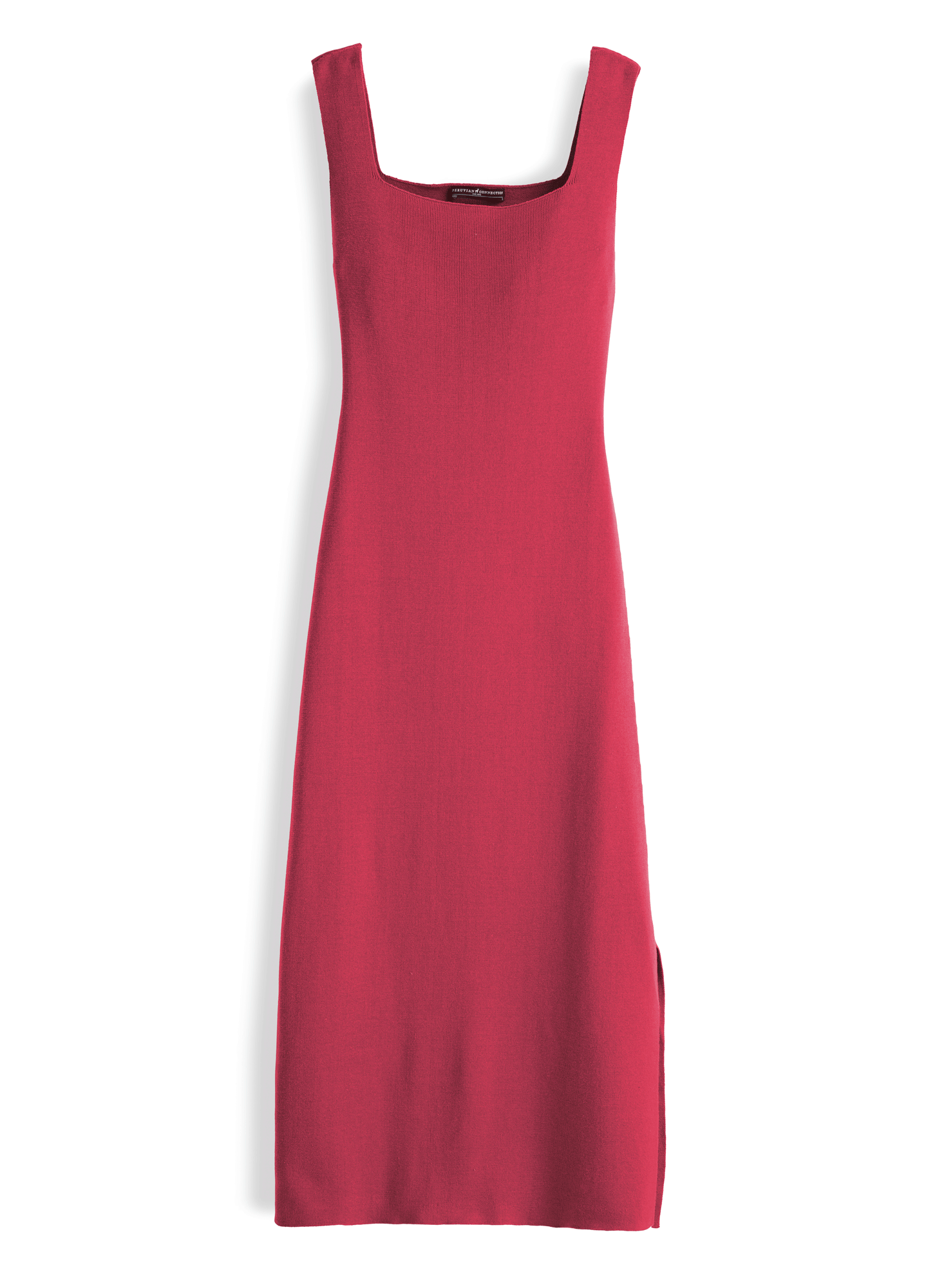 A red-hot number for steamy days and sultry nights, the column dress is a substantial rib knit of softest pima. Based on one of our best-loved tops, the architectural silhouette is figure flattering, with a square neckline, wide tank straps and a single side slit. Hibiscus or Black.