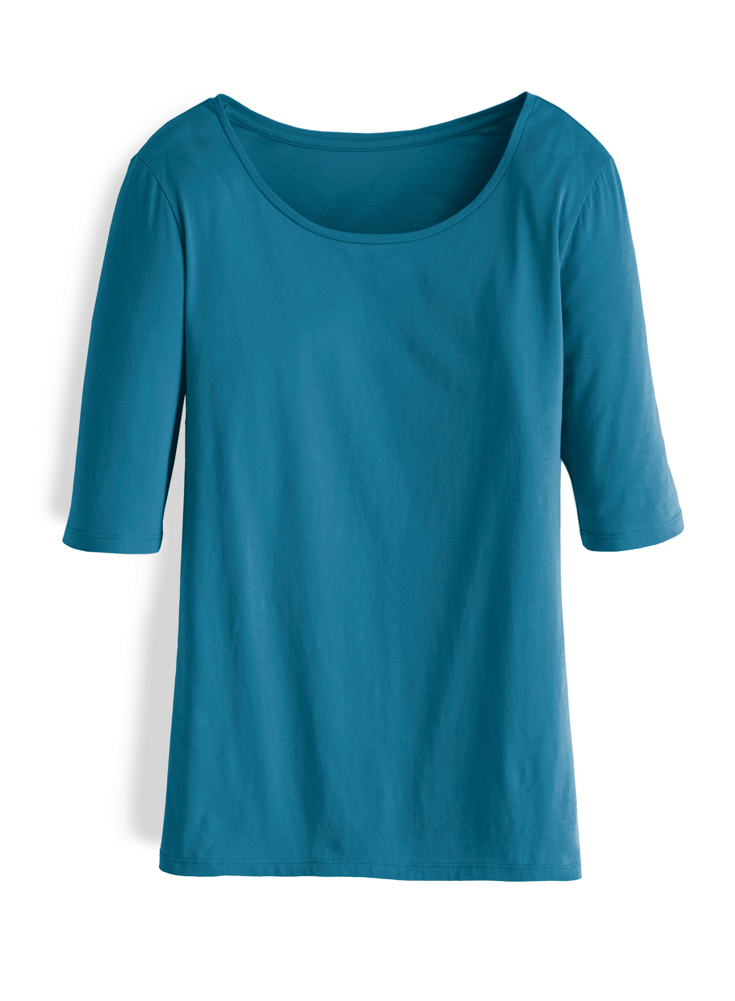 An endlessly useful new basic, our heathered pima jersey tee flatters with a round neck and slim elbow-sleeves.