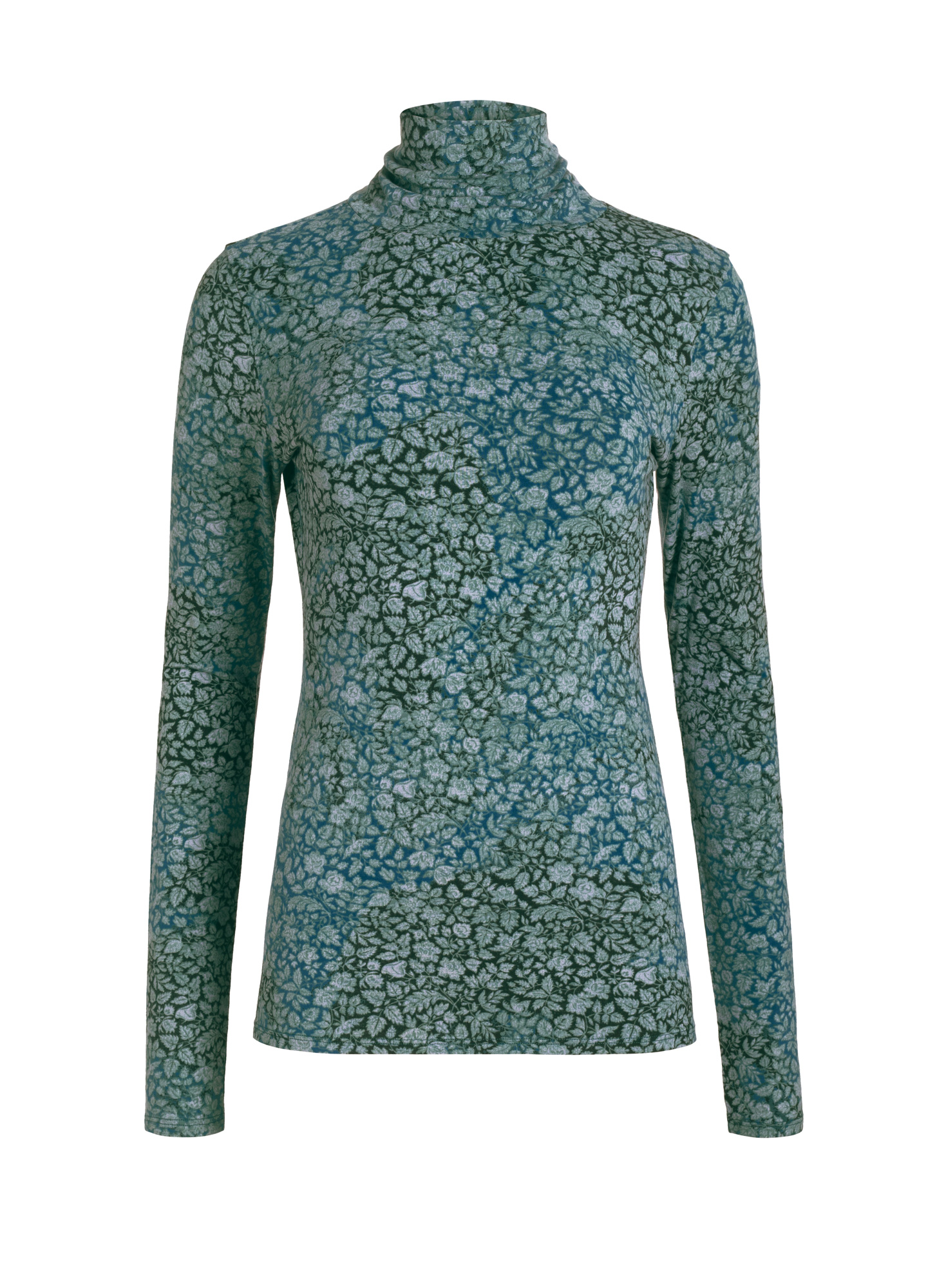 Our bestselling T-Neck style is updated in a painterly print of delicate botanicals. Sewn of pima (96%) and Lycra (4%) jersey, with a scrunchable neck and body-hugging fit.