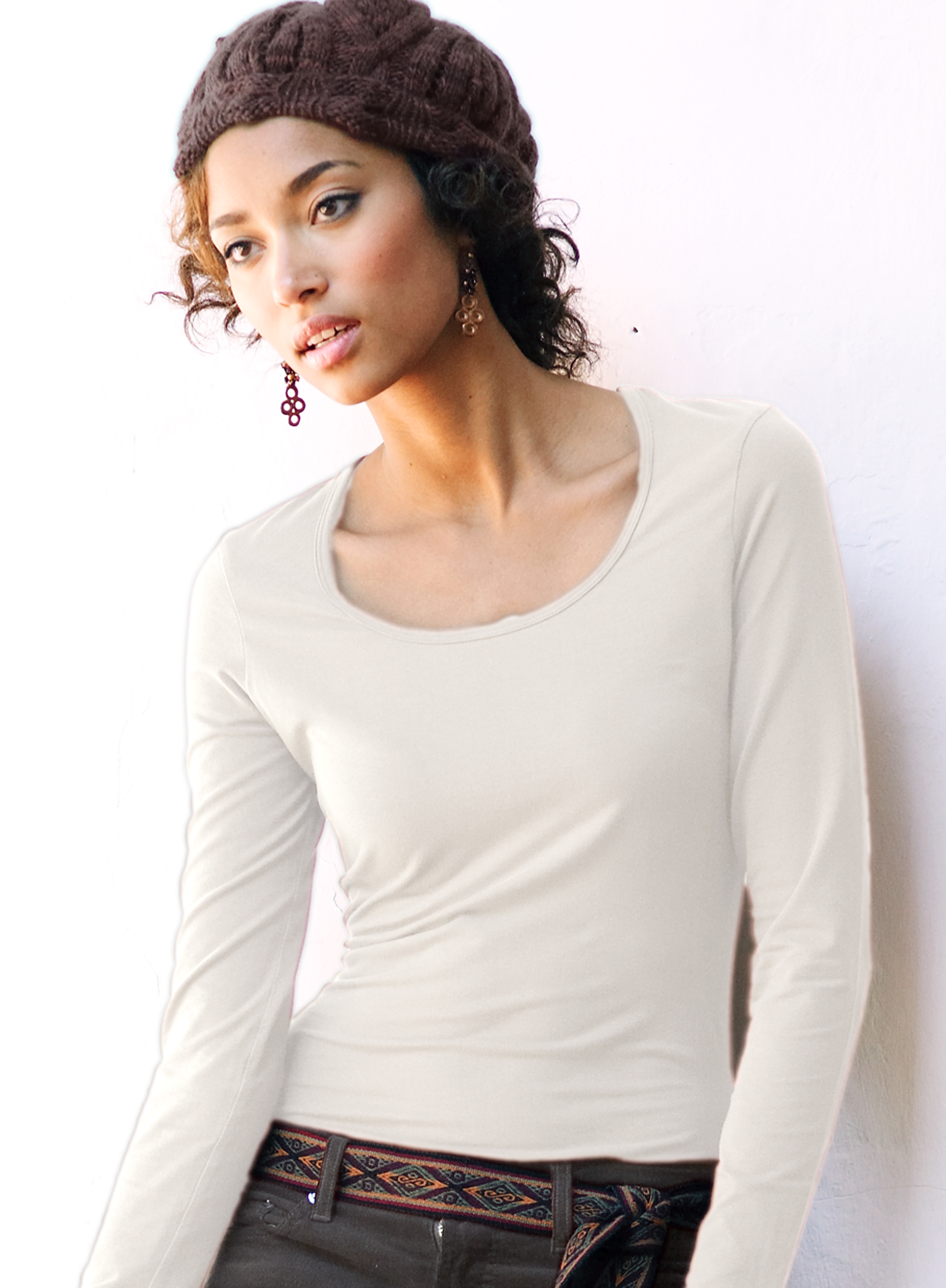 A sleek layer under jackets and knits, in silky pima (93%) with a dose of Lycra (7%) for a smooth, body-conscious fit.
