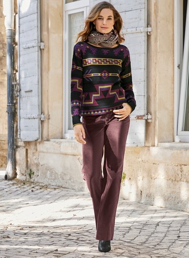 Die elastische Jeans aus üppigem Velveteen hat einen hohen Bund und ausgestellte Beine. Fünf Taschen.
