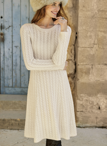 Das federleichte Pulloverkleid mit Rundhalsausschnitt ist in luftigen, griffigen Zöpfen und Rippen aus aschgrauem Babyalpaka (60 %), Nylon (35 %) und Wolle (5 %) in Bahnen gestrickt, die eine aparte Fit-and-Flare-Silhouette erzeugen.