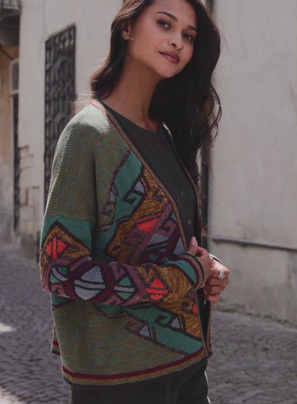 Jacke im Kimonostil mit Buntglasmotiv