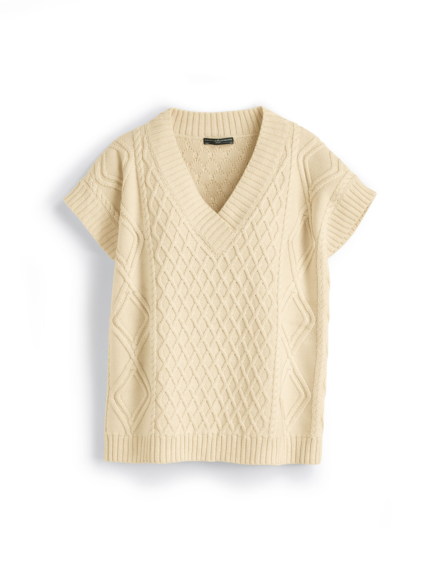 Eine lässige Version des klassischen Aran-Pullovers: Unser griffiger Zopfmuster-Pullover ist aus leichter Pimabaumwolle gestrickt, hat überschnittene Schultern, einen Crossover-V-Ausschnitt und gerippte Kanten. In Nachtblau, Dunkel-Grünblau oder Pergament.