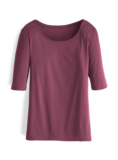 Ein praktisches Basic: Unser meliertes Shirt aus Pimajersey hat einen Rundhalsausschnitt und schmale halblange Ärmel.
