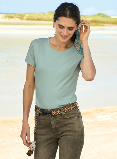 Unsere schlichten, edlen Rundhals-T-Shirts sind aus samtweichem Pimabaumwoll-Interlock genäht, haben kurze Ärmel und eine klassische Silhouette.