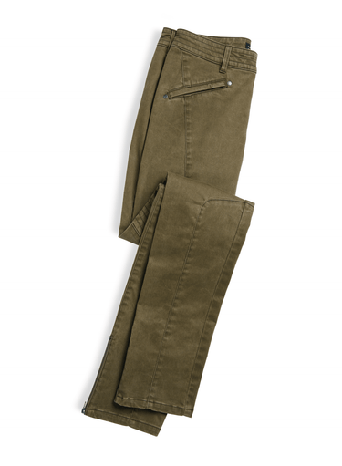 Unsere klassische Motorradhose hat schräge Steppnähte und Reißverschlüsse an den Knöcheln. Aus einem französischen Twill aus Baumwolle (97 %) und Elasthan (3 %).