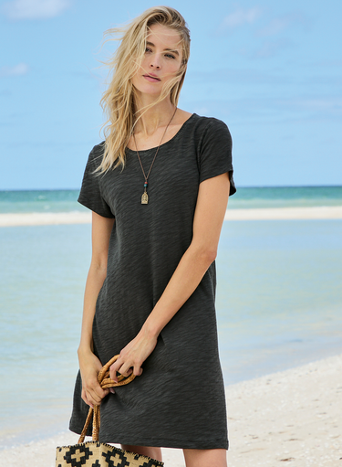 Unser kurzärmeliges Jerseykleid ist das ultimative Alltags-Basic mit schmeichelhafter Fit-and-Flare-Silhouette und Rundhalsauschnitt – zeitlos durch seine Schlichtheit. Das weiche, atmungsaktive und wunderschön fallende Baumwollflammé garantiert mühelosen Tragekomfort für den ganzen Tag – ob als perfekte Lage oder allein getragen.
