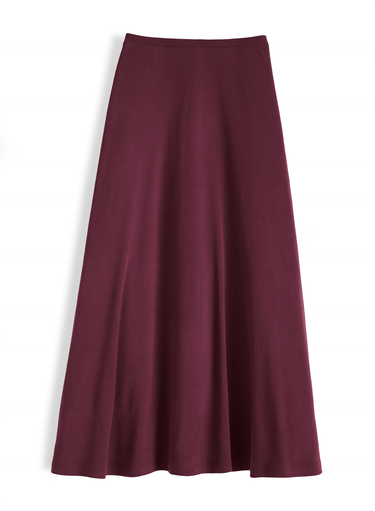 Der ausgestellte Rock ist aus weichem Pimabaumwoll-Interlock genäht.