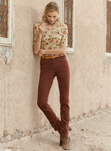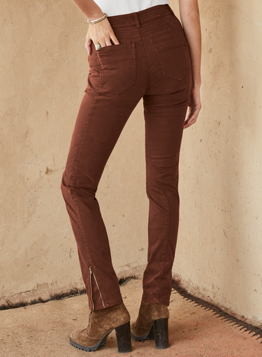 Our classic Motorcycle Pants, with top-stitched seaming and zip ankles. French twill of cotton (97%) and elastane (3%).