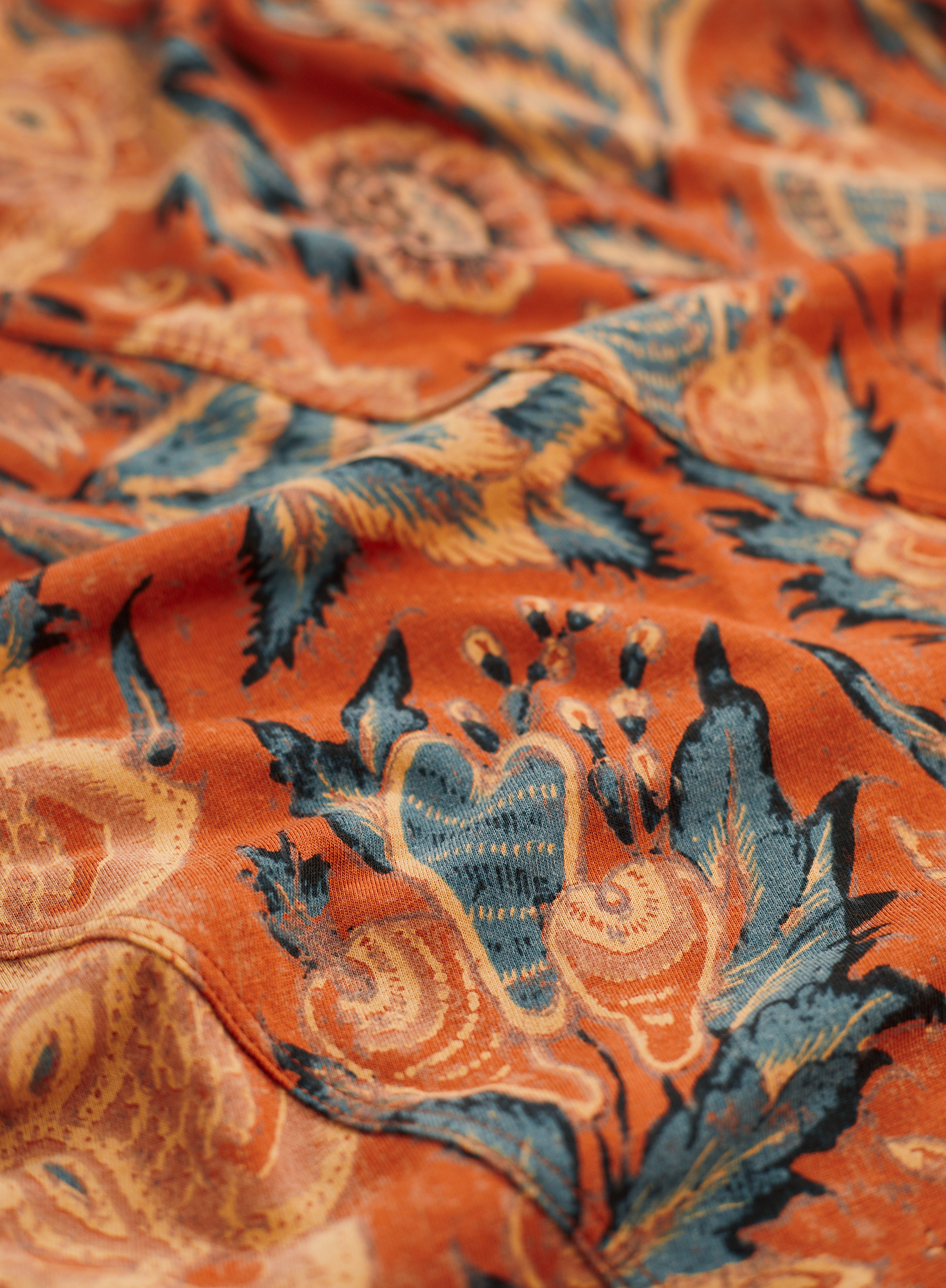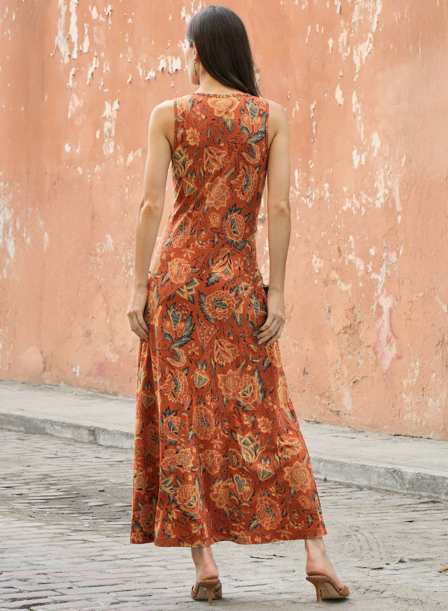 Vintage Indian florals in bright pops of madder, marigold and turquoise stand out on our bestselling A-line silhouette, with asymmetrical seaming that releases to an ankle-grazing hem.