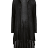 Whisper-light in semi-sheer pima, the cutaway style cardigan is knit with an open placket and circular hem that cascades much longer in back. Aquamarine or Black.