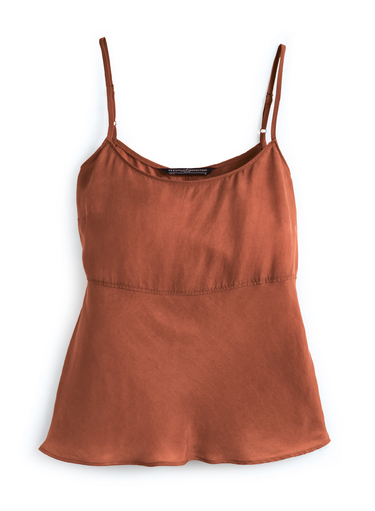 A luxe layering piece, the cami is tailored of sand-washed cupro rayon for fabulous feel and drape. Cami with adjustable spaghetti straps; empire waist seam; floaty peplum hem.