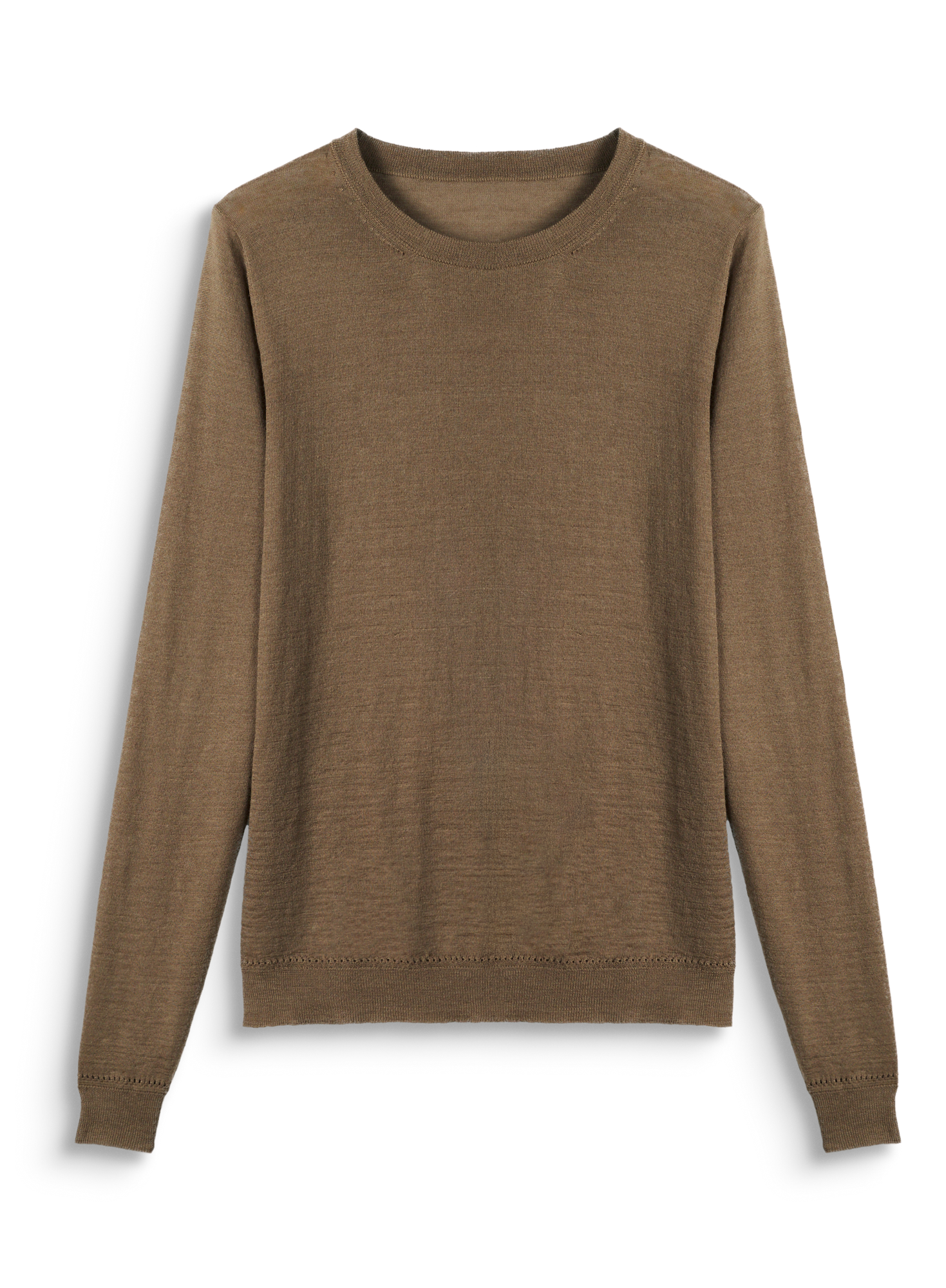 We blended two of the world's finest fibers to create this semi-sheer confection of remarkable luxury, super-fine royal alpaca for warmth and mulberry silk for a hint of sheen. A modern essential with luxurious softness, our long sleeve crewneck offers a lightweight feel with year-round versatility. Full-fashioned for a clean fit, featuring rib trim at the neck and hem and pointelle stitch detailing at the cuffs. A refined update to the classic tee—perfect for layering or wearing solo.