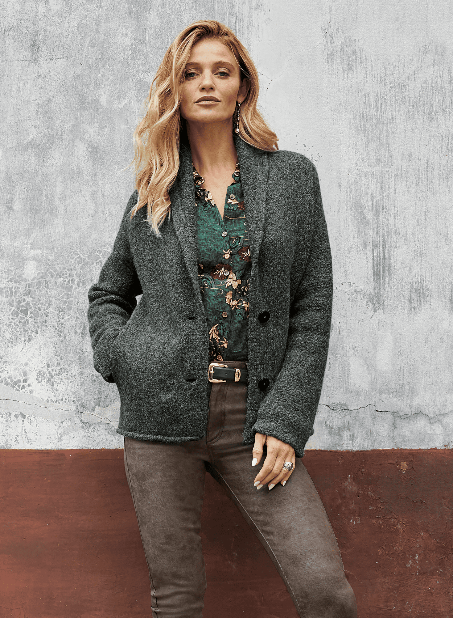 Our sumptuous blanket coat is knit of felted alpaca and polyamide. Shawl collar; drop shoulders; buttons and pockets.