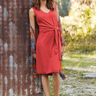 Flattering from any angle, our polished shift is full-fashion, fine gauge knit of pima (85%) and silk (15%) with an asymmetrical faux wrap layer that ties at one side. Finished with a v-neck and ribbed trim.