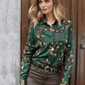 Woodcut florals float on a stippled teal ground on our bestselling cotton shirt. Tailored with a back yoke, shirttail hem and buttoning cuffs.