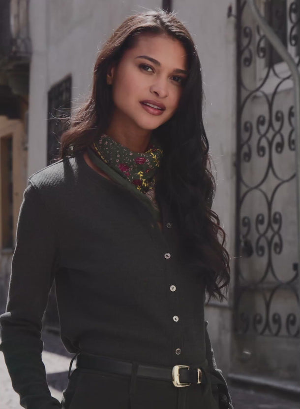 Wrap yourself in cosy elegance with this charming waffle knit top that features a round neck, buttons and delicate lettuce edging at the hem. Perfect for layering, this cardigan is a versatile addition to your wardrobe, offering both warmth and style. Casually mix and match with our Waffle Knit Joggers or Waffle Wide Leg Trousers.