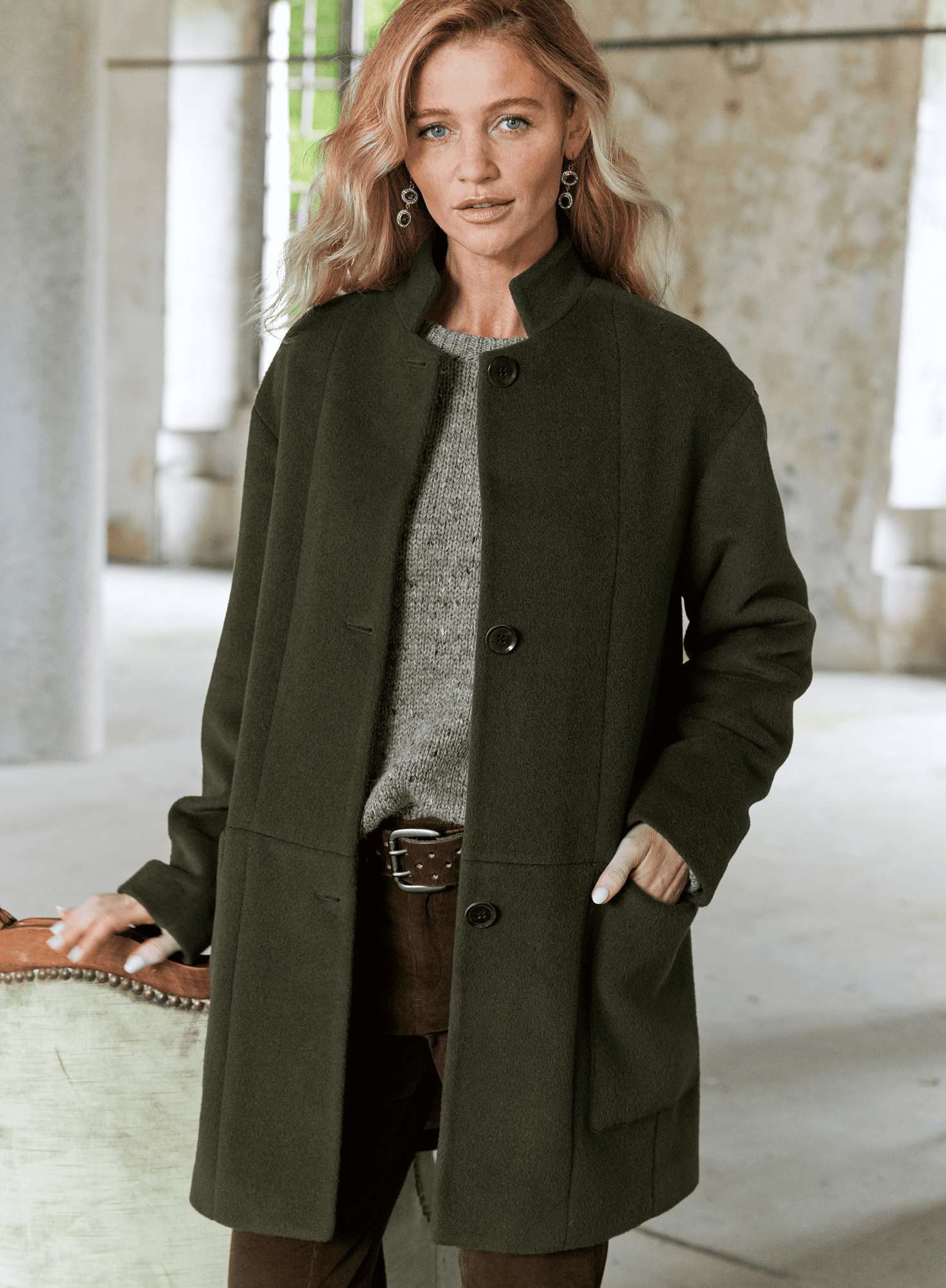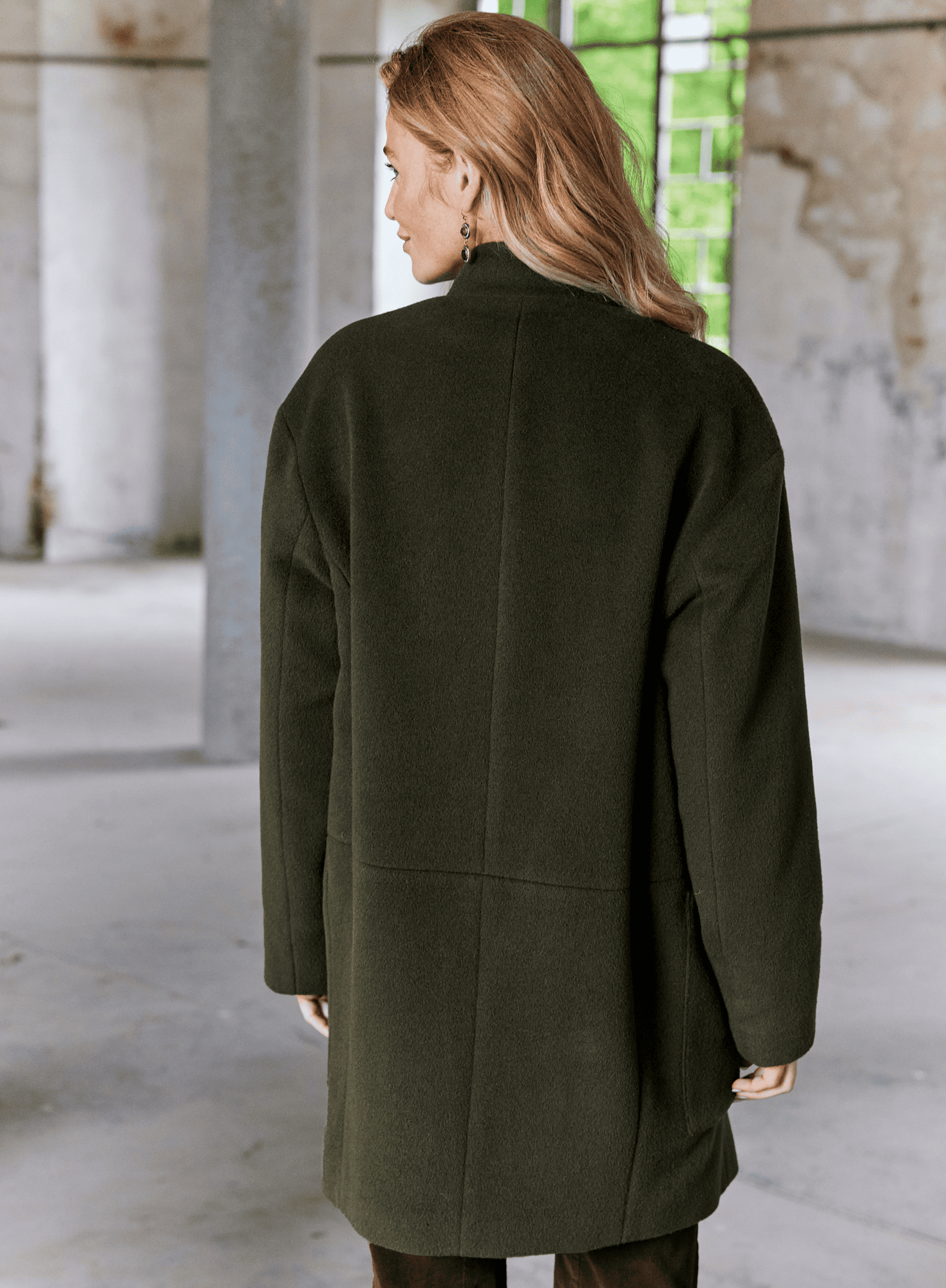 A luxe, modern update to the essential car coat, ours has a relaxed, easy shape to live in and love forever. Detailed with a high banded collar, drop shoulders and patch pockets, it’s superbly tailored in sumptuous Black baby alpaca (72%), wool (26%) and nylon (2%).