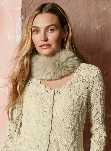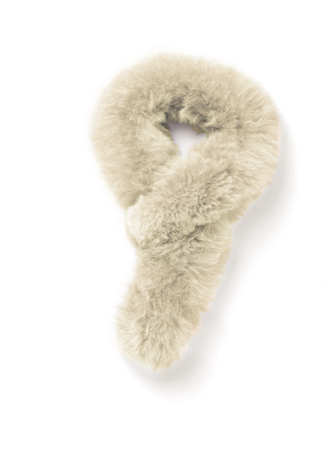 The alpaca fur, pull-through scarf adds glamour. Looped at one end to create an easy and opulent neck-wrap.