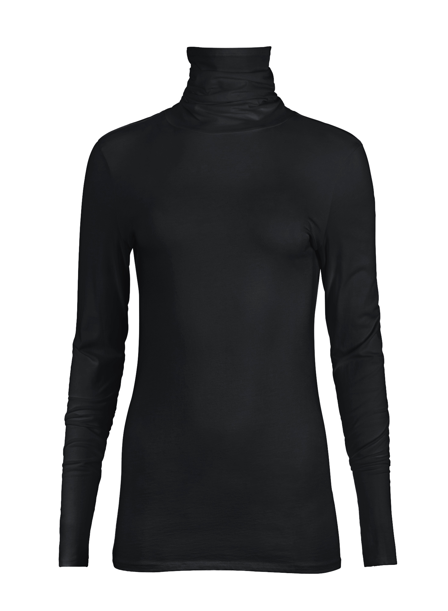 Our bestselling stretch t-neck in pima (96%) and Lycra (4%) jersey has a scrunchable neck and body-hugging fit.