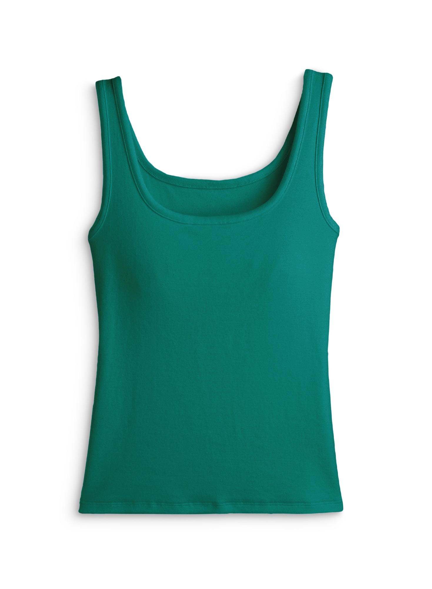 Our slim, flattering tank top, in micro-rib knit Pima cotton and spandex, is a luxe piece, worn alone or under a jacket.