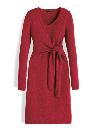 Segue seamlessly from day to night in this polished sweater-dress of delectably soft, woolen-spun royal alpaca. The silhouette is pure figure-flattery, with a V-neckline and an asymmetrical faux wrap that ties at one side; ribbed trim. A wonderful, wrinkle-free traveler.